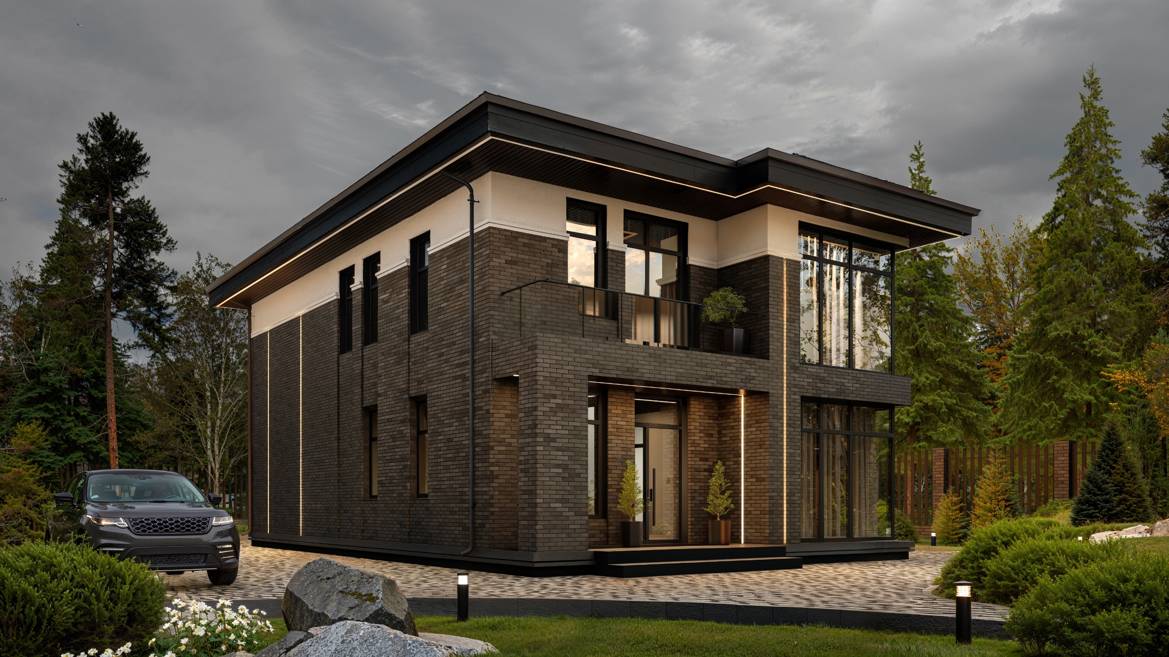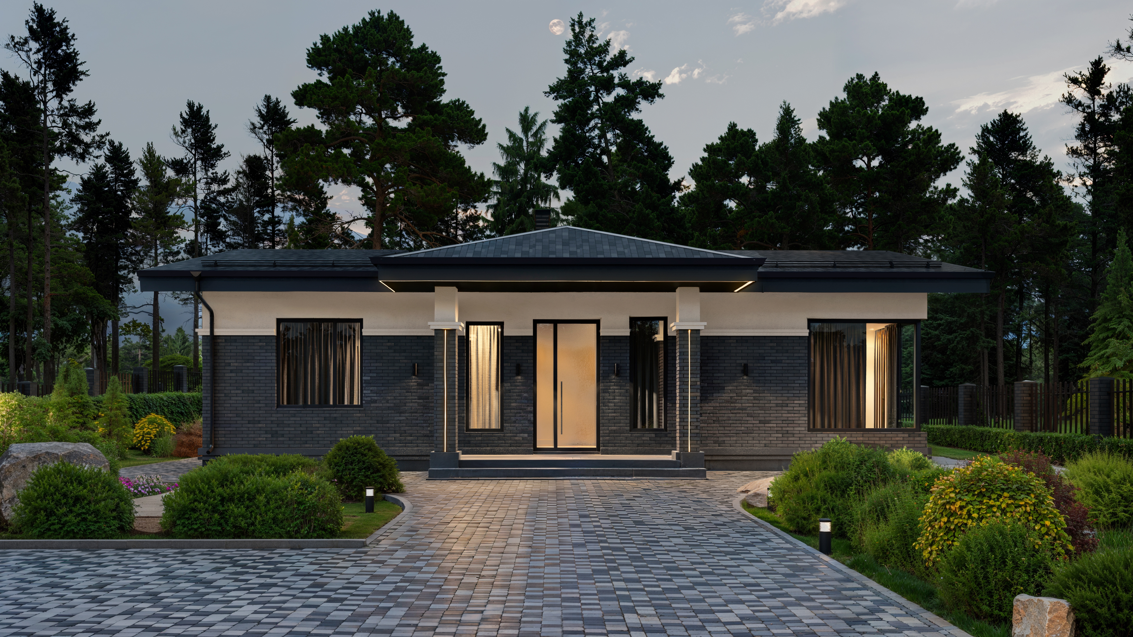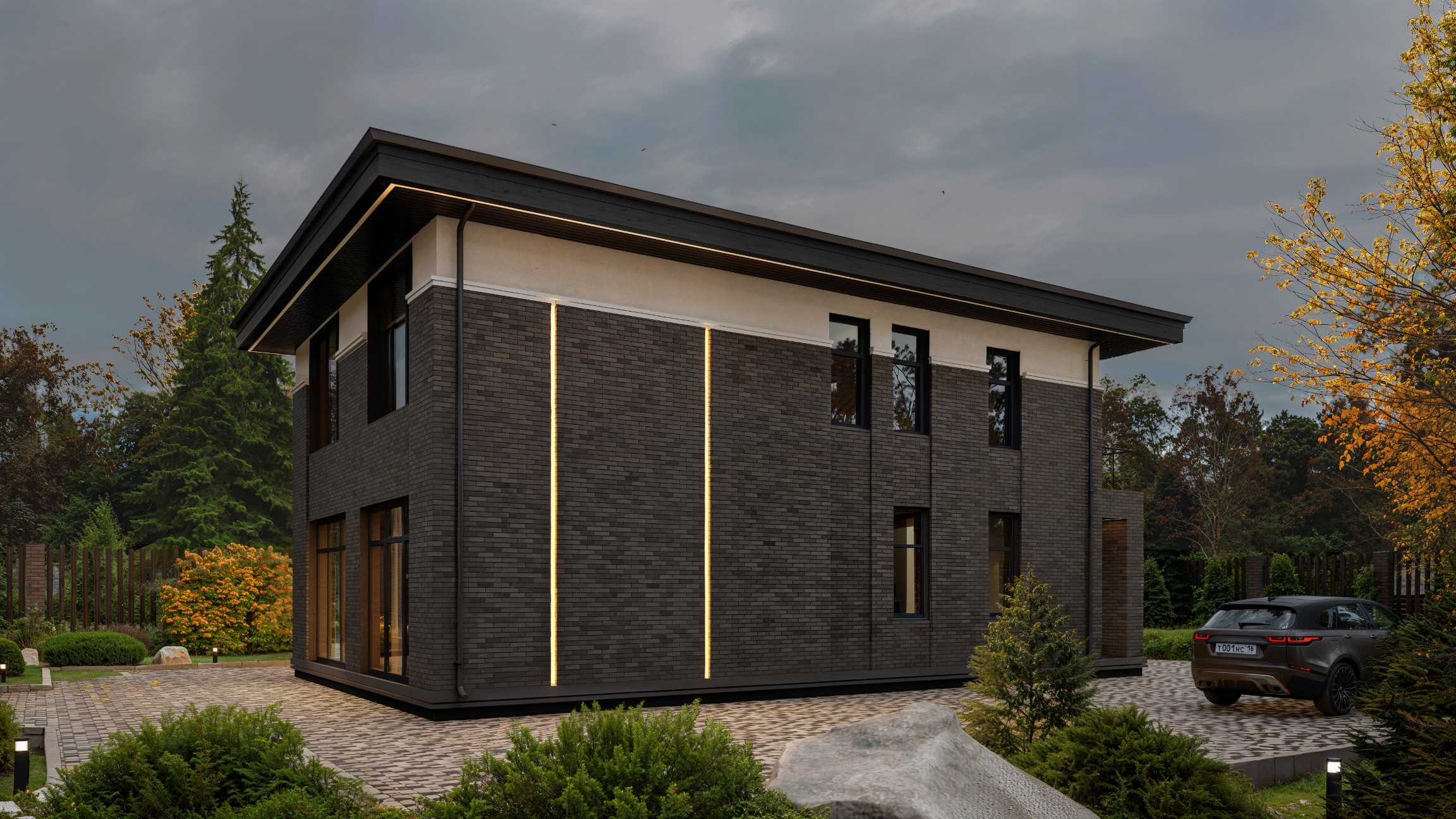- Благоустроенные участки с газоном, туями и брусчаткой